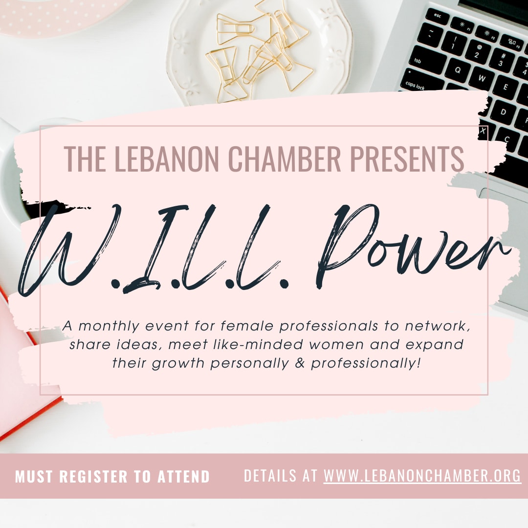 Empower Your Journey: W.I.L.L. Power Women's Event Driving Personal and Professional Growth! Step into your leadership potential with our W.I.L.L. Power Event Series, tailored exclusively for women leaders in our community. With various monthly speakers and topics, this group focuses on both personal and professional development. Let's empower each other as we lead with knowledge and a willingness to change. When: 3rd Thursday of each month, January-October from 8am-9:30am. Where: Lebanon Chamber Office
