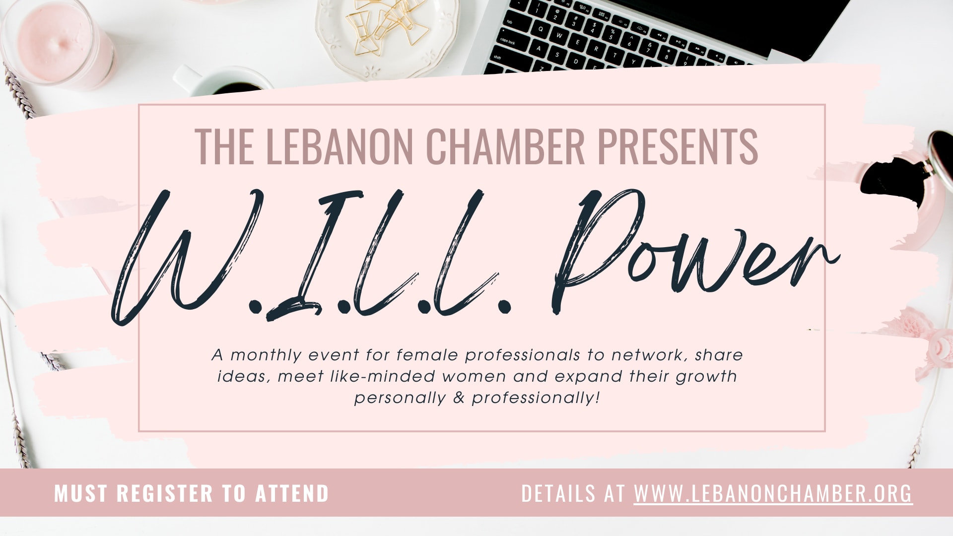 Empower Your Journey: W.I.L.L. Power Women's Event Driving Personal and Professional Growth! Step into your leadership potential with our W.I.L.L. Power Event Series, tailored exclusively for women leaders in our community. With various monthly speakers and topics, this group focuses on both personal and professional development. Let's empower each other as we lead with knowledge and a willingness to change. When: 3rd Thursday of each month, January-October from 8:00am-9:15am. Where: Lebanon Chamber Office