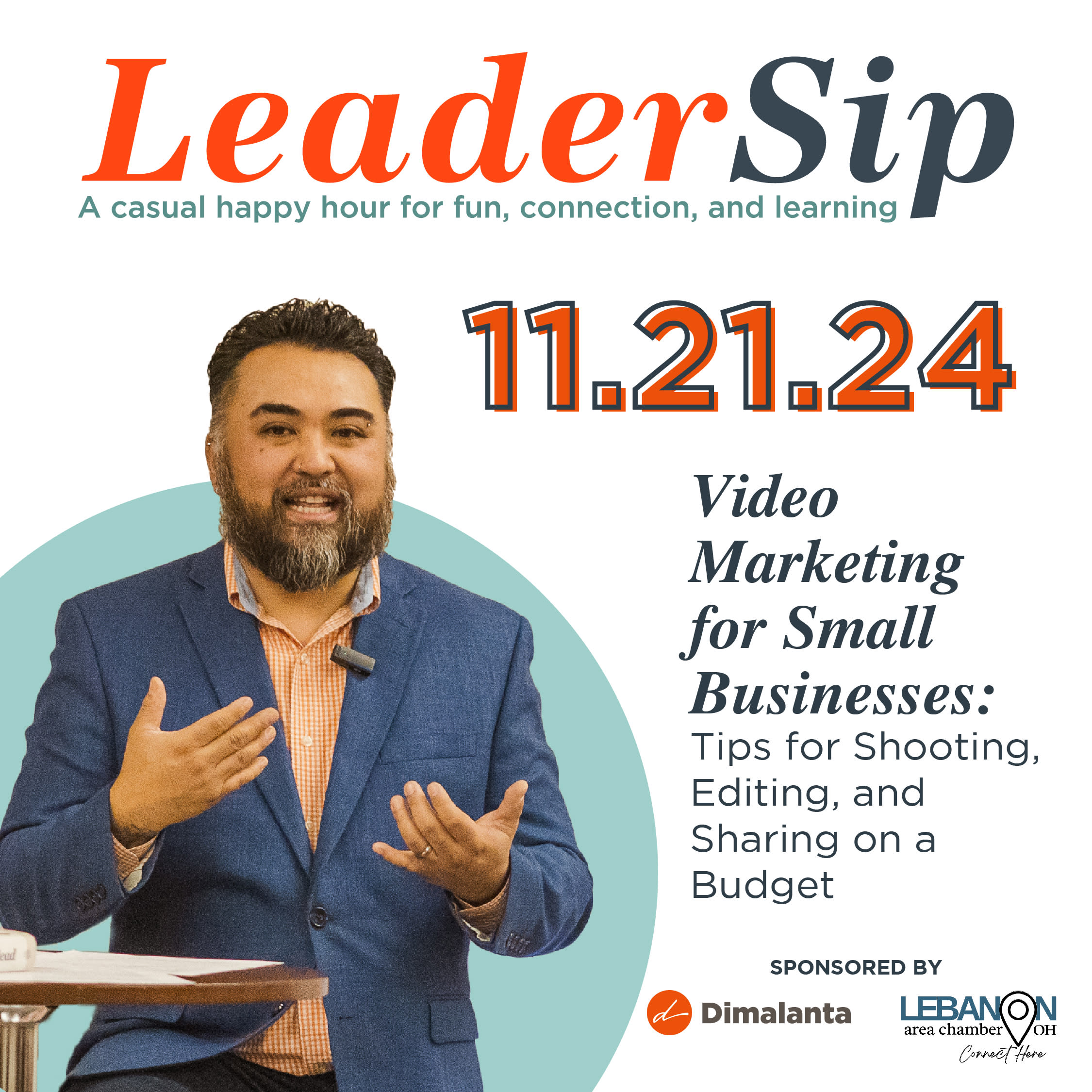 Join us for LeaderSip, a relaxed happy hour event designed for networking, fun, and learning. This month's session focuses on Video Marketing for Small Businesses with practical insights into shooting, editing, and sharing videos on a budget. Perfect for entrepreneurs and small business owners, this event will provide tips to elevate your marketing without breaking the bank.