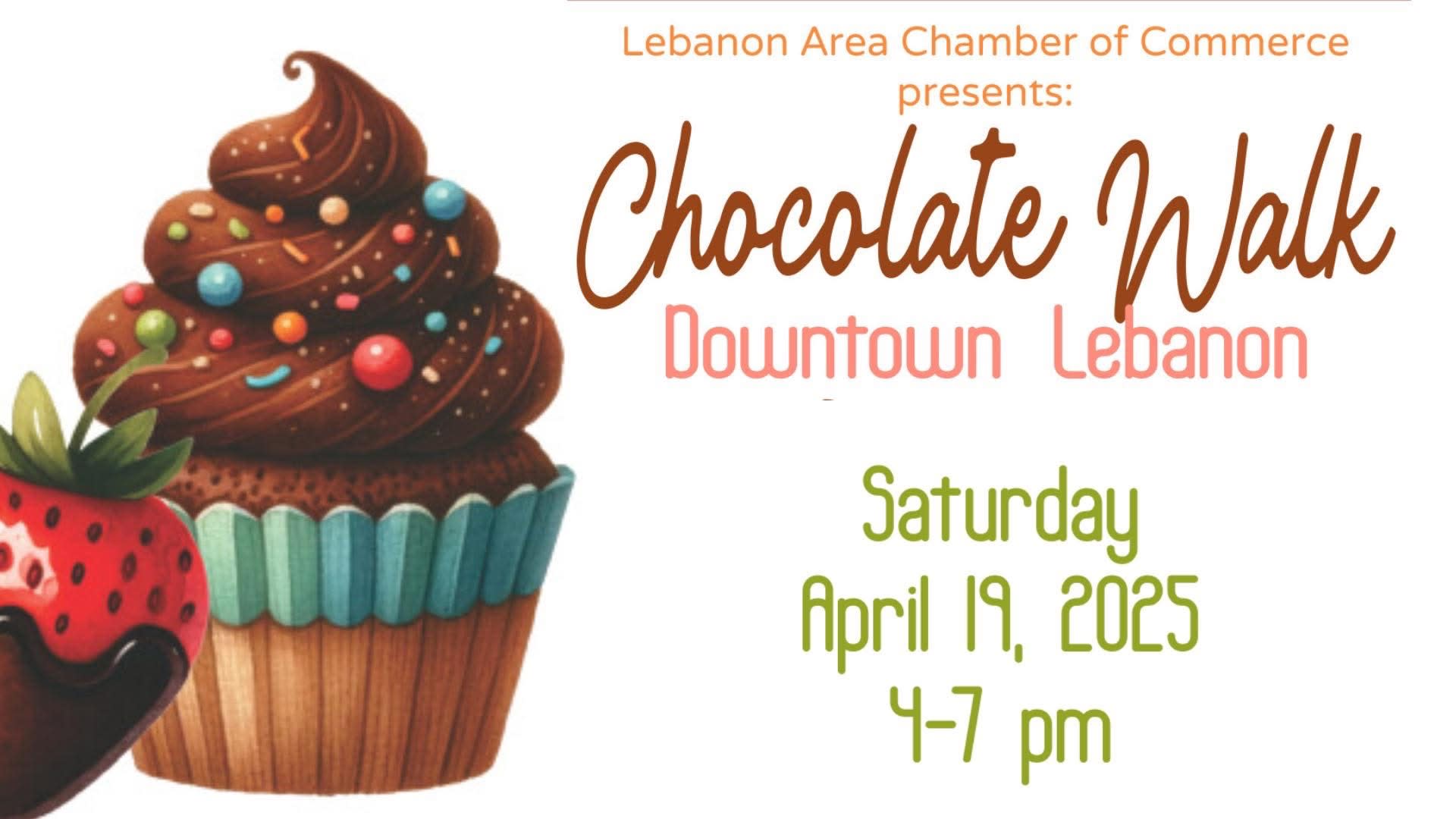 Indulge your sweet tooth at Downtown Lebanon’s Annual Chocolate Walk on Saturday, April 19th, 2025, from 4–7 PM! Stroll through charming downtown shops while enjoying a VIP shopping experience. At each participating store, you’ll receive a gourmet chocolate sample to enjoy on-the-spot, or save for later, making every stop a delightful treat.