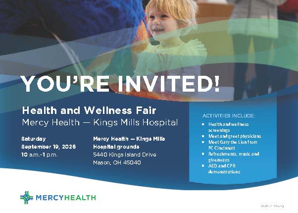 ACTIVITIES INCLUDE: Health and wellness screenings Meet and greet physicians Meet Gary the Lion from FC Cincinnati Refreshments, music and giveaways AED and CPR demonstrationsImages