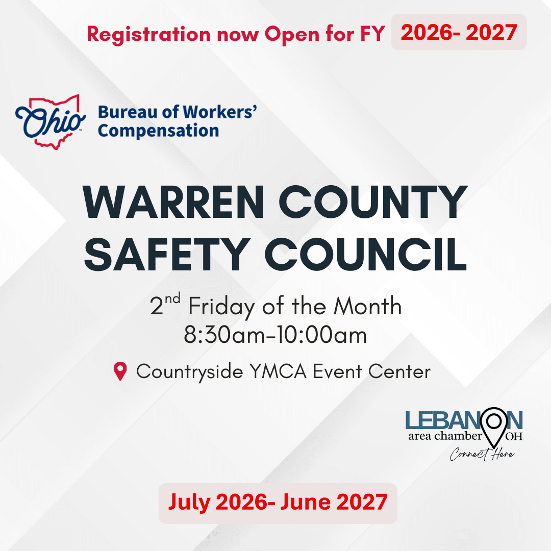 Enhance your workplace safety and compliance with the Warren County Safety Council, a key monthly event hosted by the Lebanon Chamber of Commerce in collaboration with the Ohio Bureau of Workers' Compensation. Held on the second Friday of each month at 8:00am, this series offers a valuable platform for learning, networking, and discussing critical safety topics relevant to today’s work environments.Images
