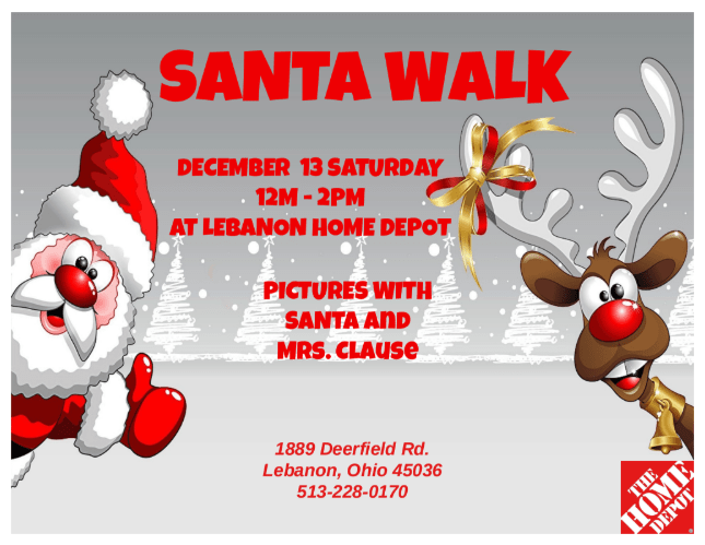 Stop out at The Lebanon Home Depot. Get your picture with Santa and Ms. ClauseImages